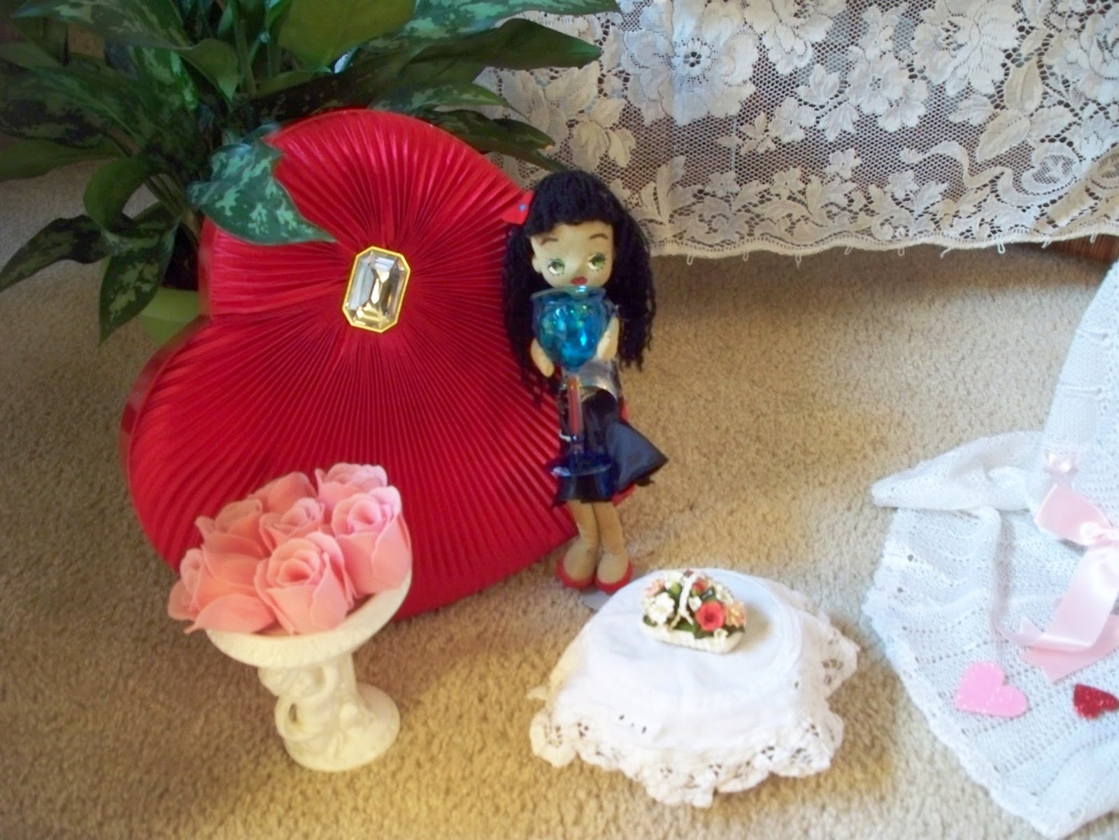 I slip back to a time long ago and a little girl who fell in love with the most beautiful heart shaped box she had ever seen, it was lavender with satin ribbon and lace ruffles and right in the middle was a glorious orchid. Oh how the little girl coveted that box. but alas it was not to be, as the older sister simply wouldn't give it to her!! It's OK Bonnie, I forgave you-hehe!
